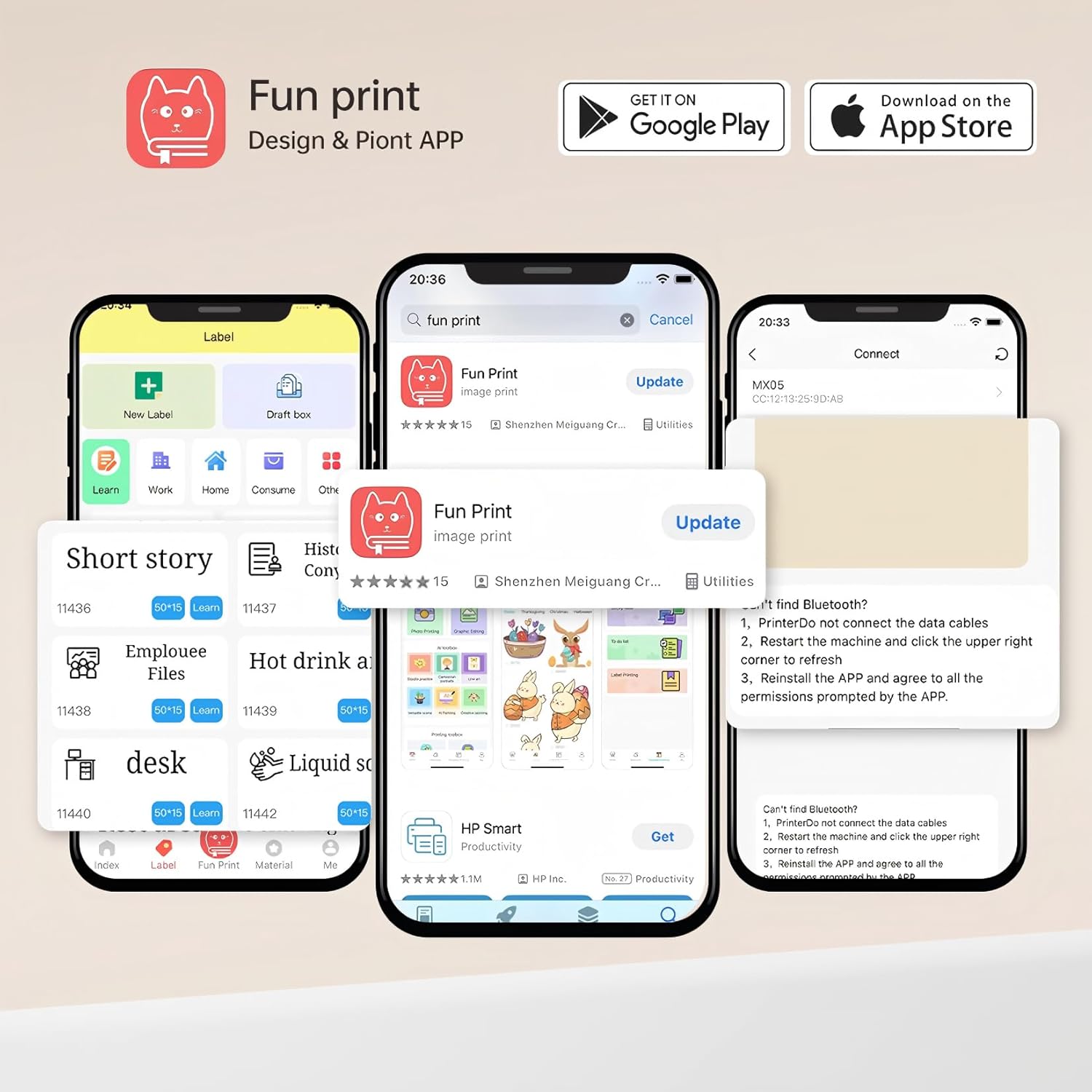 [Mini Mobile Printer with Powerful APP]- one-click printing, saving time and effort, Cabaro note printer can print photos and text instantly, Fun Print app offers variety of fonts, filter effects and themes, makes your black and white image more HD. Cabaro mini printer is a funny printer, but not a Camera.